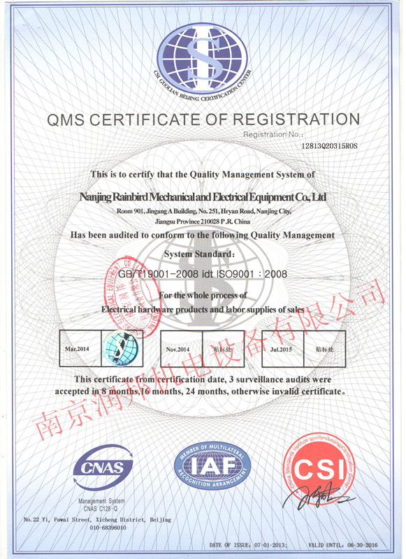 2014年6月16日,我公司順利通過ISO9001質(zhì)量管理體系認證第二年度監(jiān)督審核