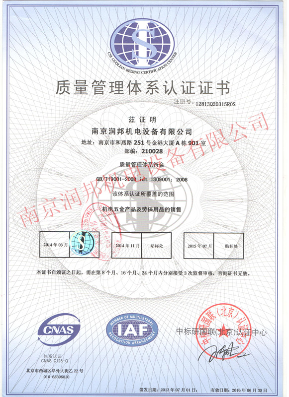 潤邦公司順利通過ISO9001質(zhì)量體系認證年審