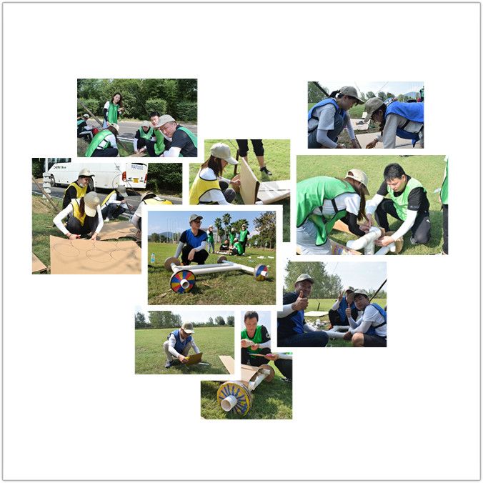 此次活動打破以往的常規(guī)培訓項目,開展主題拓展訓練—F1賽車主題活動,分組進行,通過參加環(huán)游世界杯挑戰(zhàn)賽贏取道具和積分,購買賽車零件,打造屬于自己的賽車。活動首先由歡快的“好、很好、非常好、耶”、“找大王”等破冰活動拉開序幕,大家迅速的融入團隊,建立信任。緊接著在拓展教練的指導下大家被分成了三組,各組確定隊長后經(jīng)過一番頭腦風暴,設(shè)計好隊名、LOGO、口號及隊形并逐一精彩亮相。